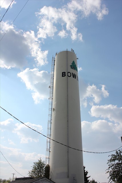 Bowden's water tower is in the style known as a "standpipe." The old water tower, which was much more interesting looking, was dismantled and removed sometime after 2008. If you have any more information about the old water tower, or even a picture of it, feel free to upload it!