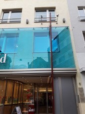 Auf dem Weg zur nächsten Station geht ihr durch den Stadtspark am alten Zoll vorbei hinunter zum Rhein. In der Rheingasse 24 kommt ihr zum ehemaligen Haus des Bäckermeisters Fischer. Hier lebte schon mein Opa Ludwig und mein Bruder Nikolaus Johann wurde hier 1776 geboren. Vor unserem Eingang hat man ein interessantes Kunstwerk aus Edelstahl errichtet. Es soll mein Schreibpult und Kinderstuhl darstellen. Auf dem Boden findet ihr eine Infoplatte. Wie lautet die 11. Ziffer? = I