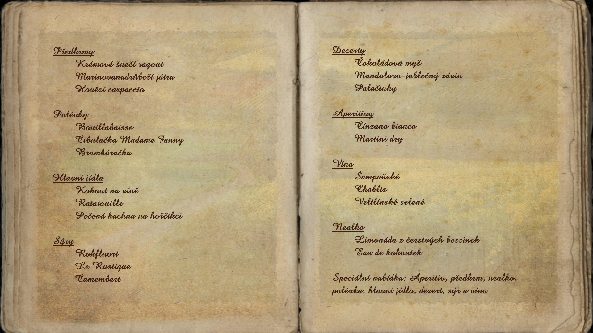 “Dobrý den, děvčata, vítejte v kavárně René. Pojďte, posaďte se a vyberte si něco z našeho menu.”