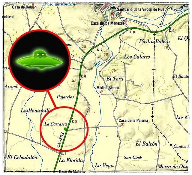 El lugar donde se ubica el Mystery se denomina “La Carrasca”, lugar aproximado donde el OVNI fue avistado. Hay que extremar la precaución porque la carretera CM-3112 está al lado y es muy transitada. Si vais con niños, por favor, os rogamos que extreméis todavía más las precauciones. Os dejamos un waypoint donde se puede aparcar. En la zona de la carrasca encontraréis sombra y bancos para sentarse. Aproximadamente, a 2 km dirección Honrubia, se encuentra la ermita de La Virgen de Rus de San Clemente, os recomendamos que, si tenéis tiempo, os acerquéis a visitar el lugar porque merece la pena.