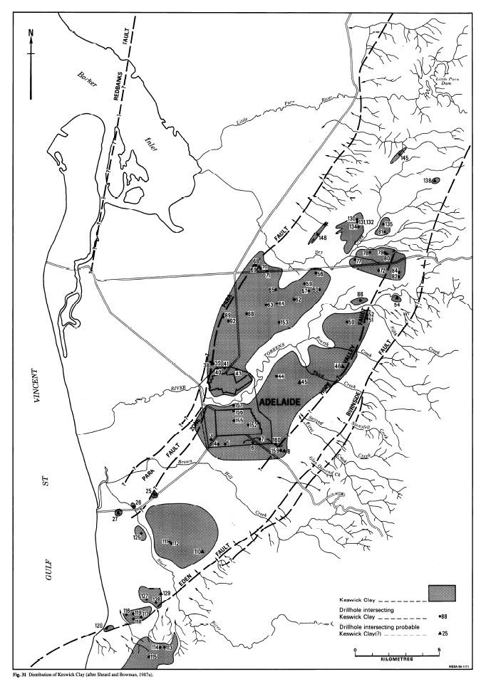 A revised near-surface geology emerged with the formal recognition of one previously informally named unit, Keswick Clay. Testing has demonstrated that the majority of Adelaide’'s reactive soils are composed of clays with a high affinity for water. The most reactive substrate is the Keswick clay formation.