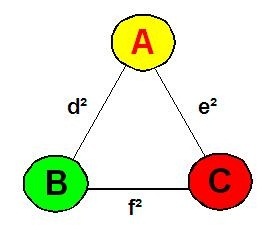 Trage drei verschiedene Zahlen in die Kreise unten ein, sodass die Summe der zwei Zahlen auf jeder Seite dem Quadrat einer anderen Zahl entspricht.