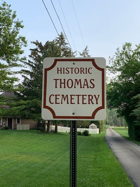 This is no longer a field puzzle. Originally, there were two plaques at the parking spot detailing the namesake of the cemetery, Abraham Thomas. THese have been removed for reasons unknown. This cache is now a traditional cache. The final coordinates should be the posted ones.