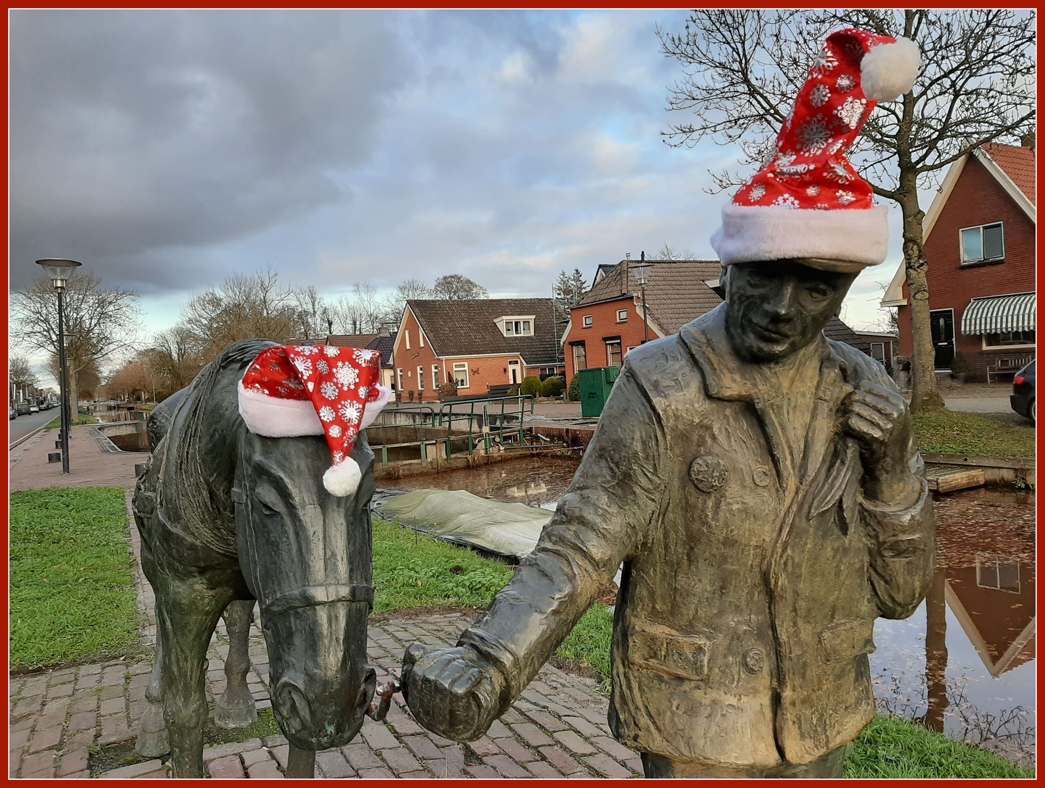 2. Maak een foto van man en paard met voor hen beiden een meegebracht attribuut (dus geen takjes/blaadjes e.d.) waarmee ze wat opgevrolijkt worden. Leef je uit, maak er iets creatiefs van. Helemaal leuk als een teamlid ook nog meedoet met de "verkleedpartij", maar voor de selfie-makers is dat een beetje lastig. Plaats deze foto bij je log.