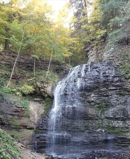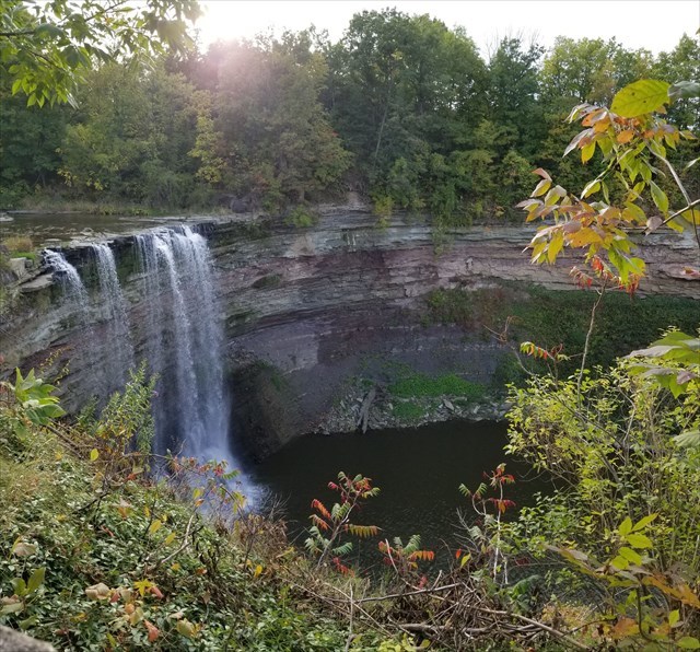 This 21 metre tall (69 ft) cascade waterfall is stunning in the spring when it’s roaring from the spring melt and also in the winter when it’s frozen in place (ice-climbing is allowed at this location). The waterfall tumbles from a broad valley above the escarpment into a v-shaped ravine below, surrounded by cliffs on either side. The surrounding forest and bedrock is considered a significant natural area, with various species and a canopy that consisting of Eastern hemlock, sugar maple, red oak, American beech and many more species.