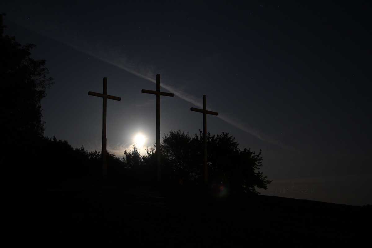 2. Three Crosses Hill. It would be wonderful to see this unique view with your own eyes. Take - for yourself, your woodcoin, or anything else where your nickname will be visible - a photo of the panorama of Kazimierz, three crosses and the Vistula in the background. [Waypoint 2] But ... Due to the fact that climbing to the peak is paid, I will enable an alternative solution here. Going from the parish church towards the Three Crosses Hill, find an information board describing this place. Next to it is a signpost (informing you where to go to get to the Three Crosses Hill or to the castle). Both the board and the signpost are at the beginning of the path leading up. You should take a picture of yourself, your woodcoin or anything else where your nickname with a information board and signpost in the background will be visible. Insert them into the log. [Waypoint 3]