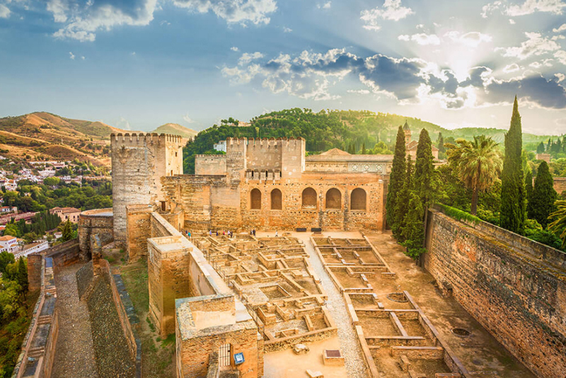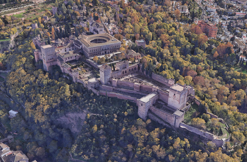 La Alhambra esta formada por la Alcazaba, los palacios nazaries y el Generalife.