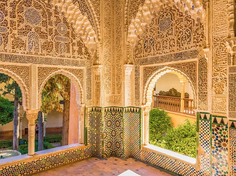 La decoración fue adaptada por Yusuf I (1333-1354) y posteriormente por Muhammad V en su segundo mandato (1362-1391), ambos responsables respectivamente de los dos Palacios de la Alhambra que mejor se han conservado.