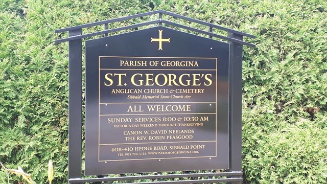 St George’s Anglican Church was built in 1876 on Hedge Road at Sibbald Point, just outside Sutton. This majestic building stands high on the bluff at Sibbald Point, overlooking Lake Simcoe. As you walk through the Lych Gate (1978) you get the feeling of typical english country. Every church provides such a wonderful roofed gateway. From a stone bench outside the church, you can gaze towards the northwest and feel the vastness of Lake Simcoe. It is no wonder that Susan Sibbald chose this location for a church.