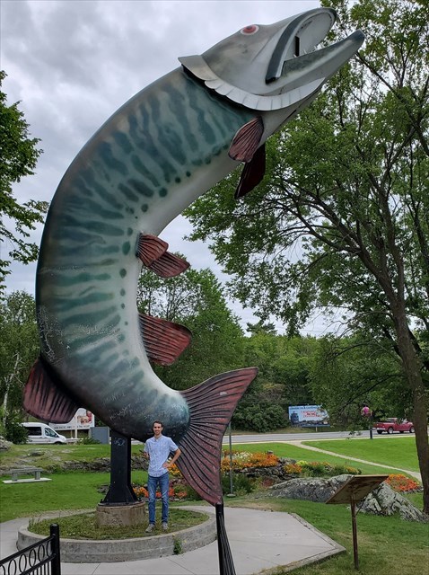 Having being built back in 1967, Husky the Muskie has required some attention since then, as parts of the statue were starting to show its age. The town of Kenora decided to repair Husky the Muskie back in 1995 for a price tag of $20,000, which I am sure most local residents will agree was certainly worth it! I enjoy visiting Husky the Musky each summer, and here is a photo of me the day of visiting Husky the Muskie this summer: