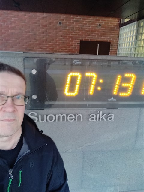 Your duty is to take picture of the clock showing Finland's official time with something personal, eg. your GPSr, in the picture. And remember to check the clock of the GPSr.