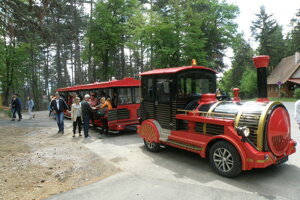 K domčekom a vyhliadkovej veži Čajka v oblakoch vás môže vyviesť aj Kúpeľný expres. Je to turistický vláčik,ktorý štartuje pri kúpalisku Čajka.
