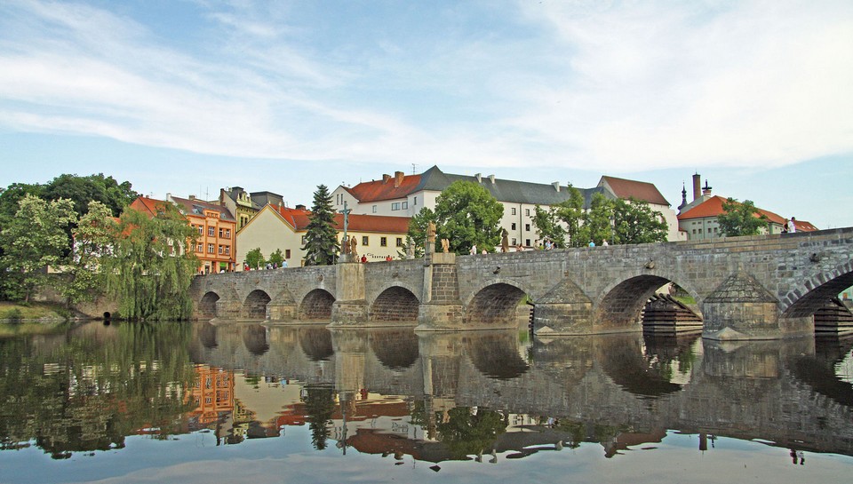 The Stone bridge in Písek (unofficially also the Deer Bridge) is the oldest preserved bridge in the Czech Republic (historically the second after the extinct Judith bridge). The bridge, built in the Gothic style, spans the Otava River about 110 km south of Prague. On the bridge there are replicas of Baroque statues and crosses.