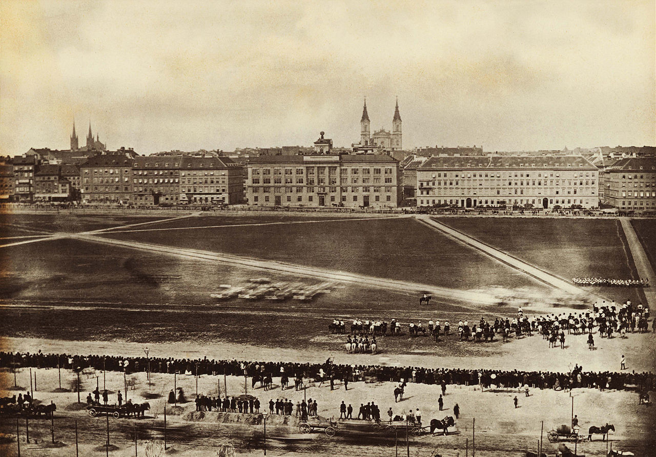 Former Paradeground. In the center of the picture is the house Friedrich Schmidt Platz Nr.3, which still exists today, where the former k & k calibration and measurement system was housed.