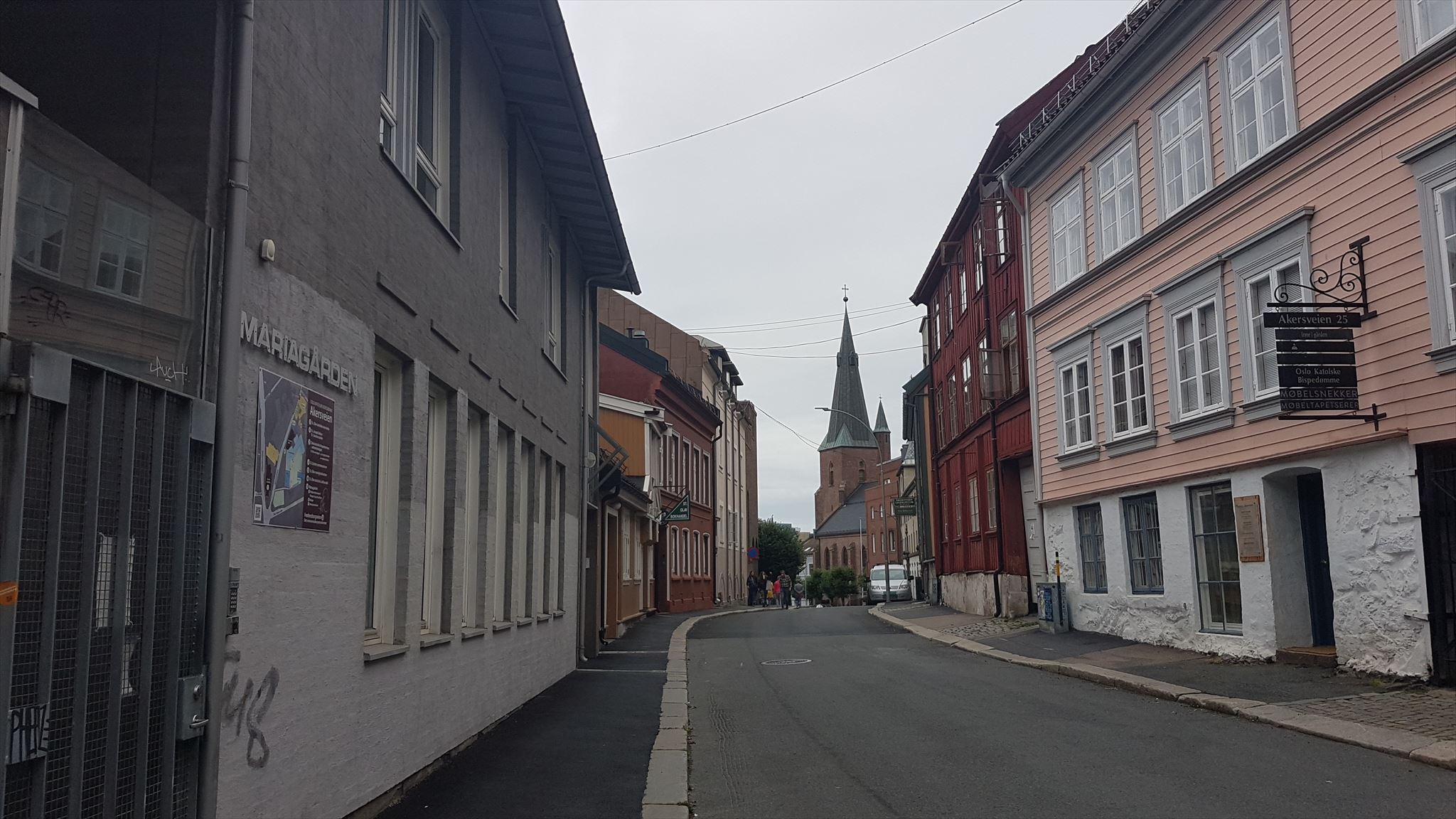 Utsikt ved GZ ned Akersveien mot St. Olavs kirke.