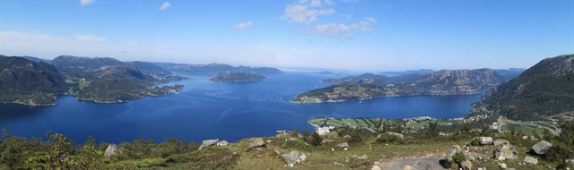 From the top of the Uburen you can see all the way to Stavanger, Kvitsøy and Karmøy, and then with Forsand, Oanes and the mouth of the Lysefjord in the foreground.