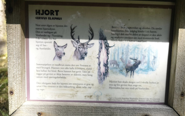 I starten er den trivelig natursti og flere små opplysende skilt som gir spennende informasjon om vilt, skogen og dynamikken i naturen.