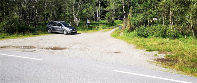 På Rossavikheia er en stor, godt merket parkeringsplass.