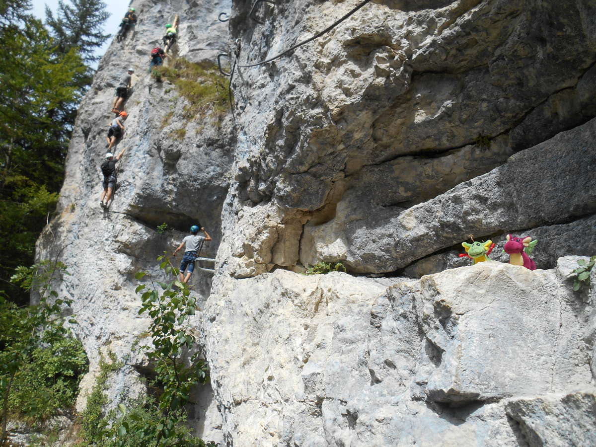 Equipement nécessaire : casque, baudrier, set pour via ferrata (appelé Ypsilon) avec amortisseur.