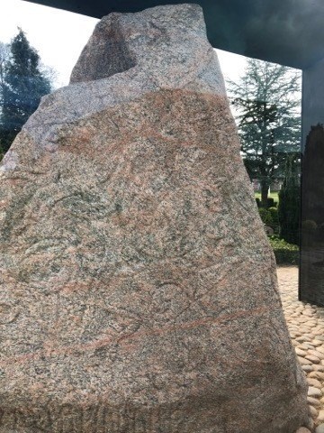 To protect the stones from the weather, they are now placed in display cases. In the evening, lights in the ceiling are lit, which clearly displays the runes and images.