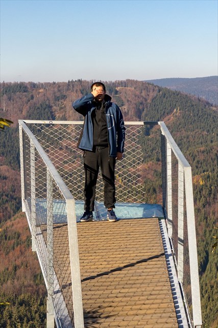 1) Odfoť fotografiu ako si zakrývaš oči, prípadne celú tvár rukami, tak aby bolo vidieť že sa nachádzaš na lávke. Ak si sám, zakomponuj do selfie vysielač na Skalke.