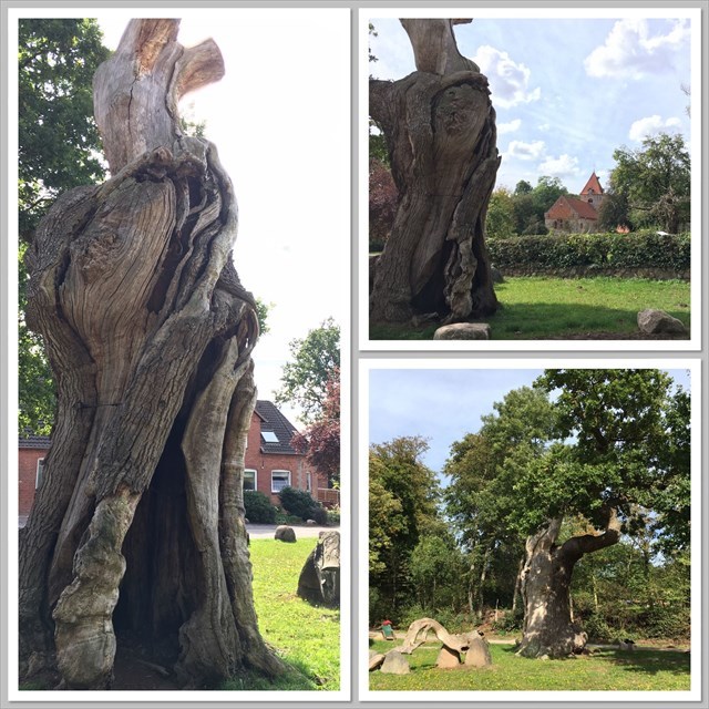 Im Zentrum Dötlingens steht die über 1000-jährige alte Dorfeiche mit einem 2016 zuletzt dokumentierten gemessenen Brustumfang von 7,15m. Die monumentale Stileiche, welche auf einer Wiese in der Nähe des Tabkenhofes und der St.Firminus-Kirche steht, wurde 1980 bei einem Sturm durch einen Blitzschlag schwer geschädigt. Seitdem steht dieser imposante Baum mit stark verkleinerter Krone an seinem Platz und verlor 2002 ohne jegliche Einwirkung einen ihrer großen Äste. Der Stamm ist sehr unregelmäßig und teilweise geöffnet. In etwa 6m Höhe ist die ehemalige Bruchstelle zu sehen und in ca. 4m Höhe geht waagerecht der einzige Ast dieses Baumes ab, der zum Ende hin ein paar Zweige trägt.
