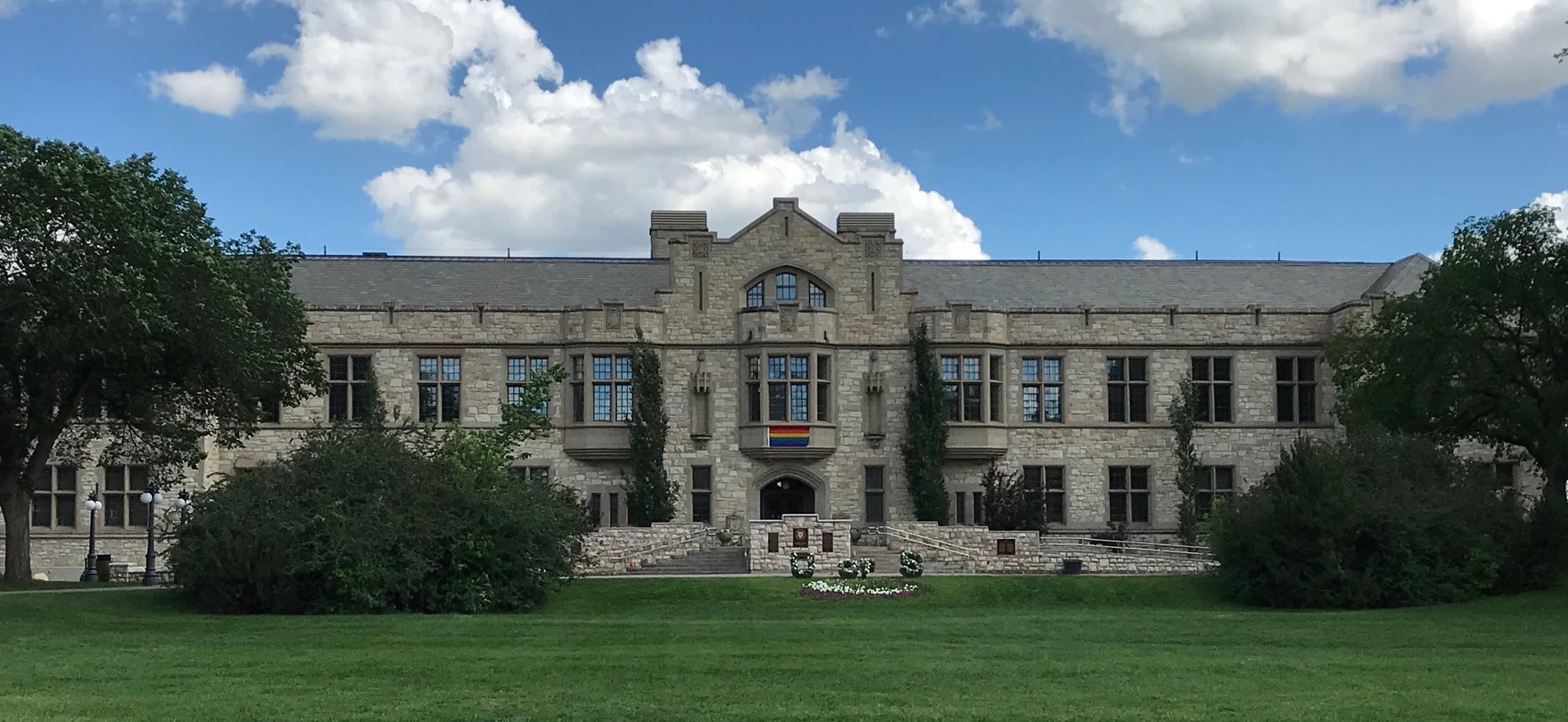 Many of the buildings on the University of Saskatchewan,campus are connected by tunnels and skywalks; however, the outdoor walkways provide you with the opportunity to appreciate at least some of the architecture of these hallowed halls of higher learning. They have been described as "the finest grouping of university buildings in Canada designed in the Collegiate Gothic style." Now a National Historic Site of Canada, construction of the College Building started in 1910. Designed by architects Brown and Vallance in the classic Elizabethan E shape, it was the first College of Agriculture at a Canadian university, and one of the first of six buildings of this style that they initially set out around the "Bowl." The original buildings were built using native limestone which was mined just north of the campus. When the local supply of limestone was depleted, the University turned to Tyndall Stone, so called because it is quarried at Tyndall, Manitoba