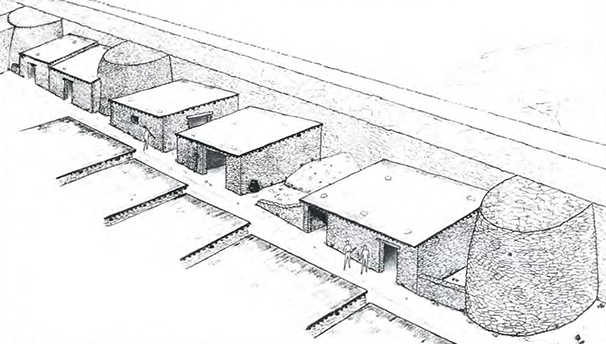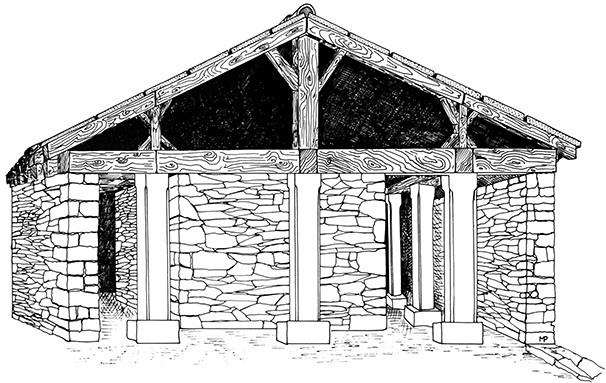 Restitution hypothétique de la façade sud du Fanum des Castels - Réalisé par Michel Py