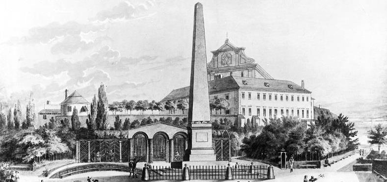 A s far as we may know, this place was a rocky hill called Puhlik. In 1799, fourteen stops of the Way of the Cross was build up on the side of the hill. According to the Way of the Cross, the hill was called Kalvarie. In 1814, Count Mitrovsky, the Moravian governor of the town, established the town park. On October 4, 1818, in the newly reconstructed park, an obelisk was built as a commemoration of Napoleonic Wars. In honour of the emperor, the park was named Franzensberg, in Czech Frantiskov. In addition to the obelisk, there was an orangery, greenhouses, a garden gazebo and a well of Fons Salutis. The park was fenced, equipped with benches and guarded by guards.