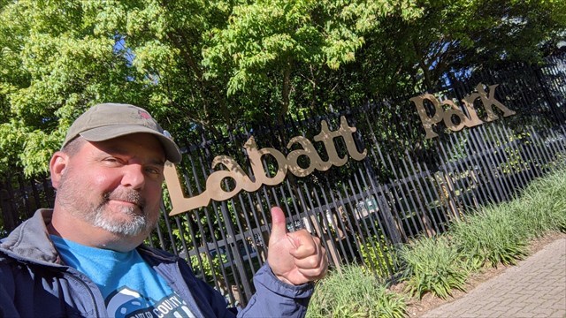 - At the main gate of Labatt Park, just to the north of the Labatt Park sign on the fence at the tree, there are two tall pillars. On one pillar is a large square light but on the other there is a small animal. What is the animal? Approximately at N 42° 58.994 W 081° 15.595