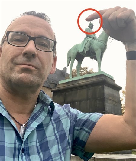 In front of the Kaiserpfalz there are 2 equestrian statues. The gentleman on the left side wears a spiked helmet. Take a photo with the spiked helmet poking into your finger. You don't have to be on the photo yourself! Your finger at the required position is enough!