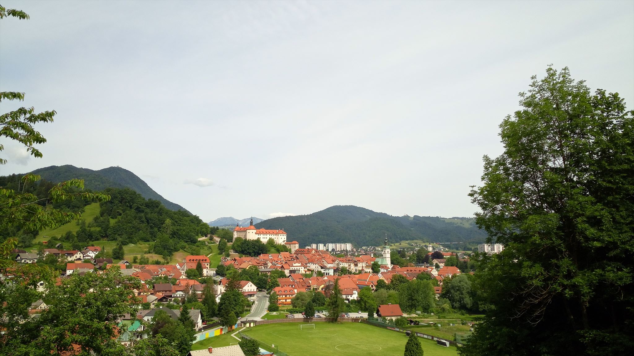 When you ascend to the Church of the Holy Cross, in the distance, you can see the view of Lubnik with the surrounding hills and Ratitovec behind it. Before that, you have a beautiful view of Loka Castle.