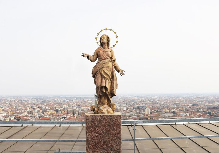 The Madonnina is a statue made of golden copper and sculpted by Giuseppe Perego; it was placed on the top of the highest spire of the Duomo in 1774, and it has been there since: the only modifications were some renovations in the inner structure and the add of the halberd, which is actually a “masked” lightning rod.