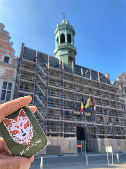 Prendre une photo de vous ou votre pseudo visible avec en arrière plan l'Hôtel de Ville de Mons en travaux.