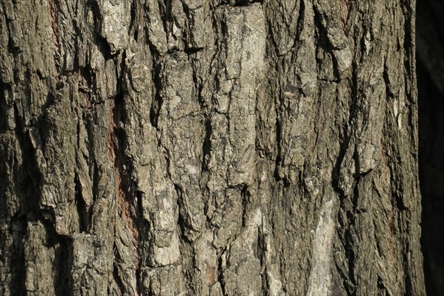 The bark is thick and stringy and hangs and peels in long narrow flakes on old trees.