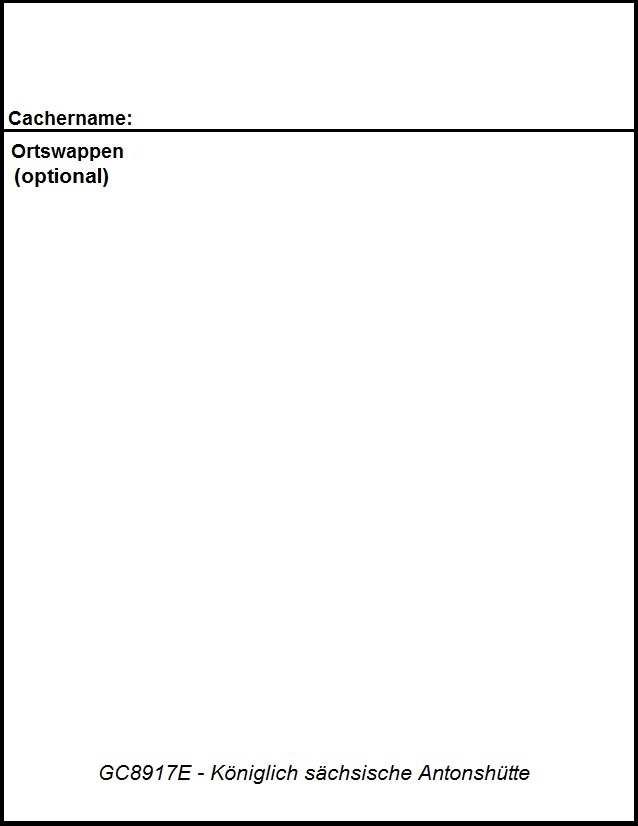 2. Druckt euch das Logformular zu Hause aus und schreibt oben euren Cachernamen darauf. Optional bitte ich euch noch das an den Listingkoordinaten eingepflasterte Ortswappen darunter zu zeichnen. Haltet das korrekt mit Cachernamen ausgefüllte Formular so vor Ort in ein Foto, dass man im Hintergrund die Antonsthaler Papierrolle als Eingang zum Familienpark, das alte Herrenhaus oder das gepflasterte Wappen erkennen kann. Selbsverständlich wäre es am schönsten, wenn IHR mit auf dem Foto zu sehen seid. Dieses Bild fügt ihr bitte eurem Logeintrag an.