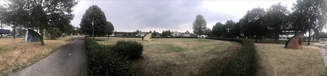 Het wordt gevormd door drie kwadranten van een grafheuvel in de drie primaire kleuren, rood, geel en blauw. Ze staan verspreid over het terrein opgesteld, zodat ze een klein landschap vormen. De beeltenissen die zijn uitgesneden in de grafheuvels doen van de ene kant gezien denken aan een hoofd, van de andere kant gezien aan een urn. Door de taxusstruiken aan de achterkant van de heuvels wordt het kunstwerk een levend geheel.