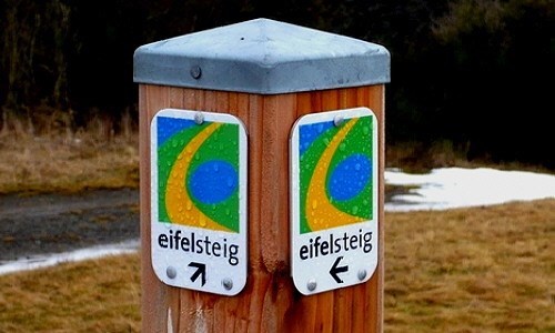 - Wandel de Eifelsteig (of toch minstens het deel van Gerolstein tot het eindpunt in Trier). Deze langeafstandswandeling waar je voor deze cache ongeveer 130 km van moet wandelen is volledig bewegwijzerd.