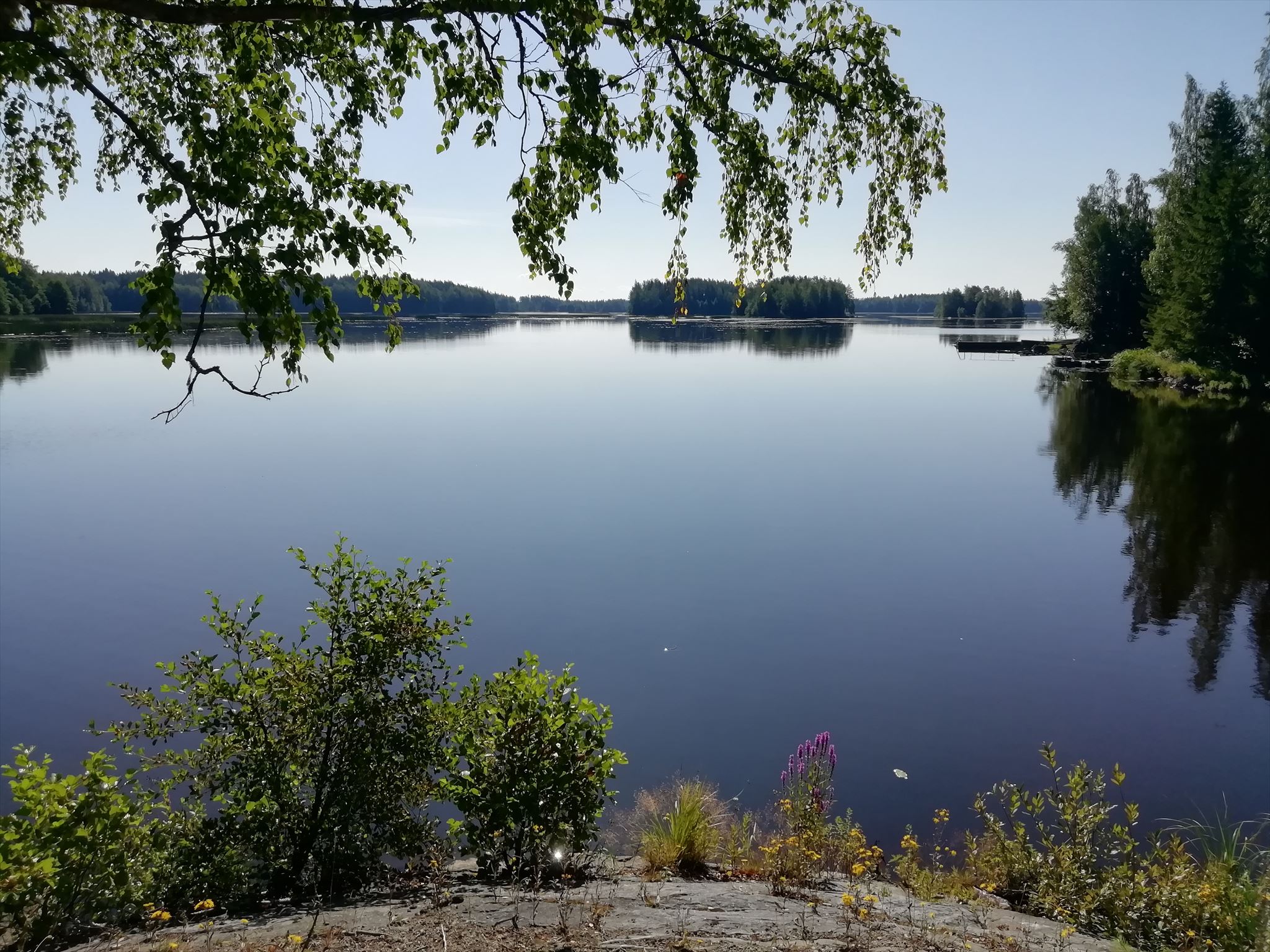 Maisema näyttää erilaiselta eri vuodenaikoina. Aurinkoisen lämpimänä kesäpäivnä 24.7.2019 järvi näytti tältä sangen kesäiseltä.