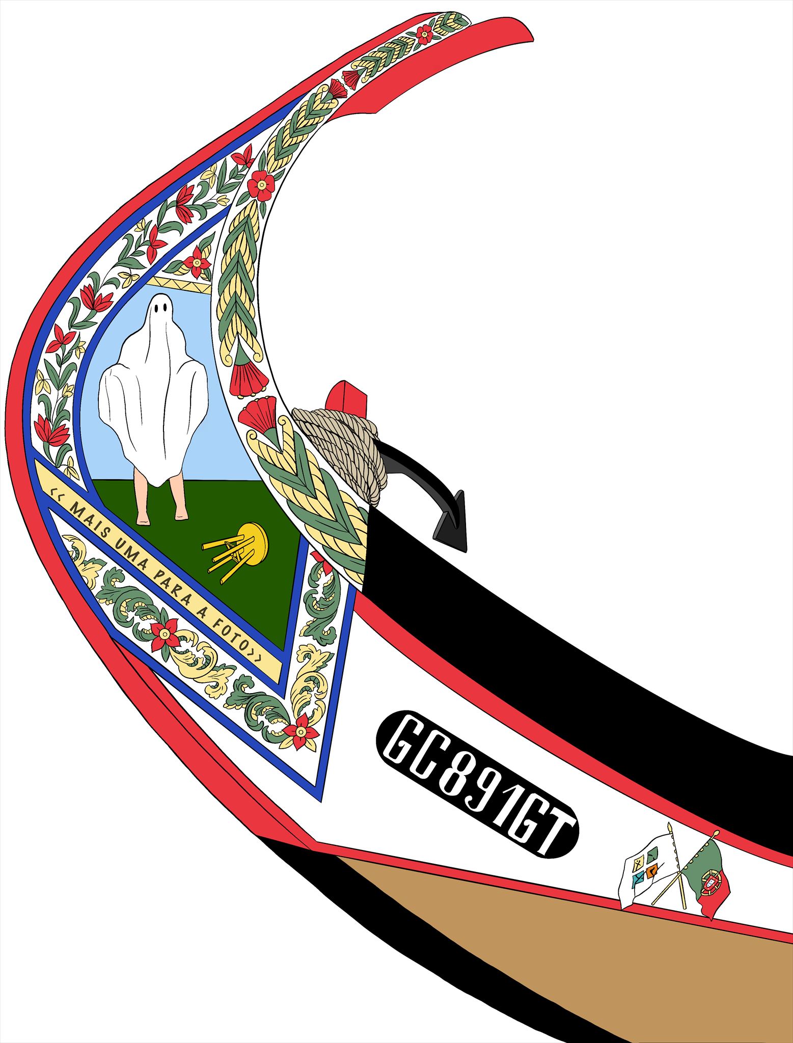 This boat became an ex-libris of Aveiro. Its bow and stern embellish the channels of the city with its paintings composed by text and images. They were and still are a way of communication that relates the present, honor loved figures or satirize unwanted ones.