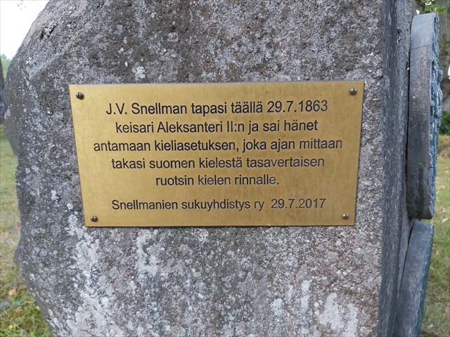 29.7.2017 paljastettiin vuoden 1863 kieliasetuksen muistolaatta Hattulassa. Snellmanien sukuyhdistyksen, Hattulan kunnan ja Panssariprikaatin järjestämällä tilaisuudella muistettiin J.V. Snellmanin ja Venäjän keisari Aleksanteri II:n kohtaamista Parolannummella 29.7.1863. Keisari antoi tapaamisen perusteella 1863 kieliasetuksen, jonka seurauksena suomen kieli saatiin ajan myötä tasavertaiseksi ruotsin kielen rinnalle.
