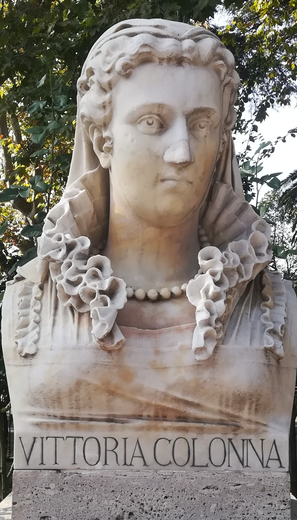 There are only three women considered worthy of a bust at that time: Vittoria Colonna, Santa Caterina da Siena and Grazia Deledda. Source: Wikipedia