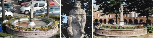 Sculptor Herman Cornelis was responsible for the Uilenspiegel fountain that is implanted centrally on the market square and the Breugelian capitals of the market arcade with the Flemish sayings and proverbs.
