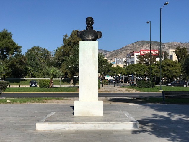This nice bust is in Glyfada (Attica), located inside a small park, facing the seaside and not far-away from the big church of Agio Konstantino.