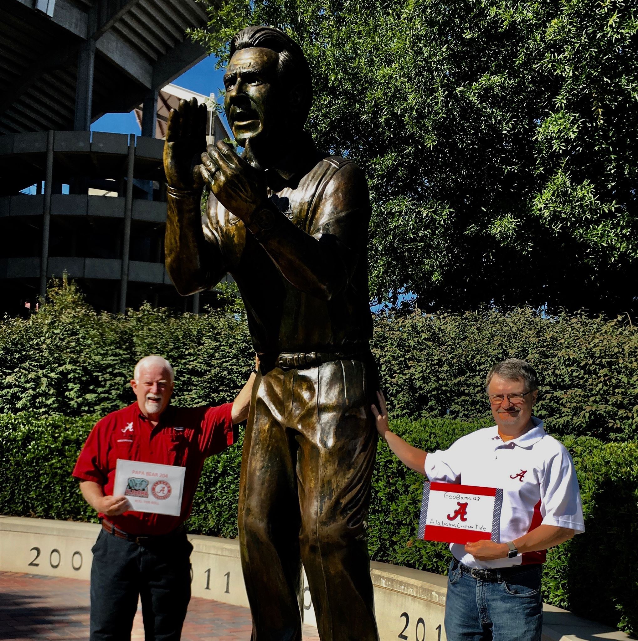 šLog Requirement: You MUST take a photo in front of one of the Alabama coach sculptures (your choice, and you don't have to show your face).Ā You must hold a sign that includes the following information:Ā (1) your geocaching name and (2) the name of your favorite sports team (can be any sport).Ā (3) In your log, post this photo and mention the name of your team. Failing to include this photo and information may disqualify your find and lead to log deletion.