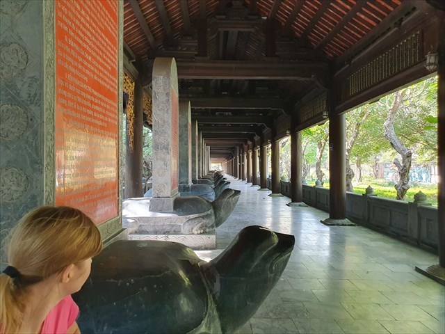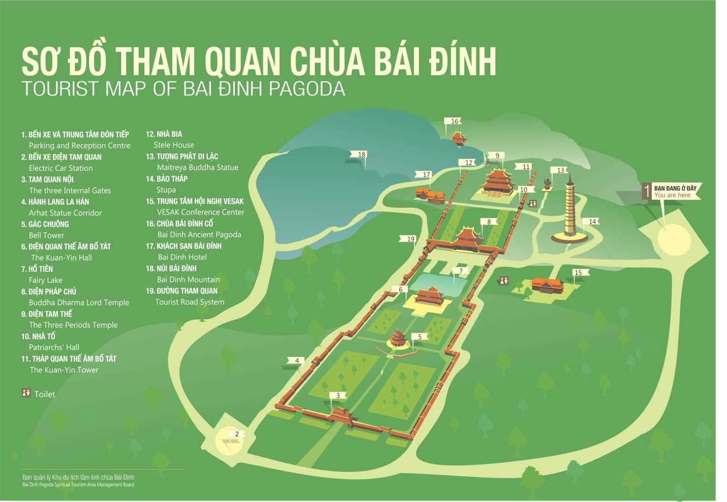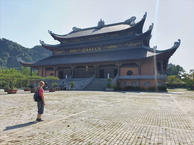 You can go from the parking to the complex by foot. However, because of the distance from the parking to the main gate of the complex (about 1,5km) and not very well marked pedestrian entry I recommend taking the electric bus which will drop you off at the main gate (but of course on the inside). From there you will have to go through the Three Internal Gates gate (no. 3 on the attached map) and head right. From now on you will be lead by the covered corridor (the one with many little Buddha figures in its walls). From time to time a path to the left (or right) will intersect with the corridor. I recommend you take each of them, see what's at the end of it and come back to the corridor to continue the trip. This way you should be able to see the whole complex. After seeing the modern complex, you can also go to the historical Bai Dinh temple (no. 16 on the attached map).