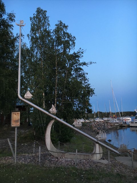 At the given coordinates there is a sculpture that represents shipbuilding in Luvia and sea level from the 20th century to the 11th century. You can see the current situation by looking at the shoreline. With each century there is a silhouette of the ship type that was popular at the time.