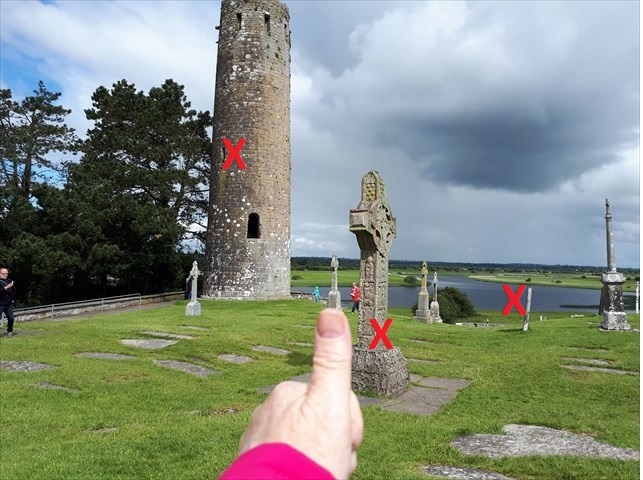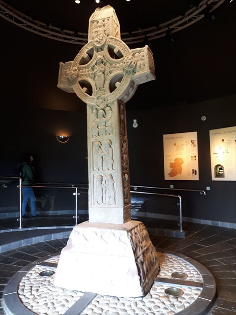 Cross of the Scriptures: This 4-metre-high sandstone cross is one of the most skilfully executed of the surviving high crosses in Ireland,The cross was carved from Clare sandstone c.900. The surface of the cross is divided into panels, showing scenes including the Crucifixion, the Last Judgement, and Christ in the Tomb. The original was moved into the visitors' centre in 1991 to preserve it from the elements; a replica stands at the original site.