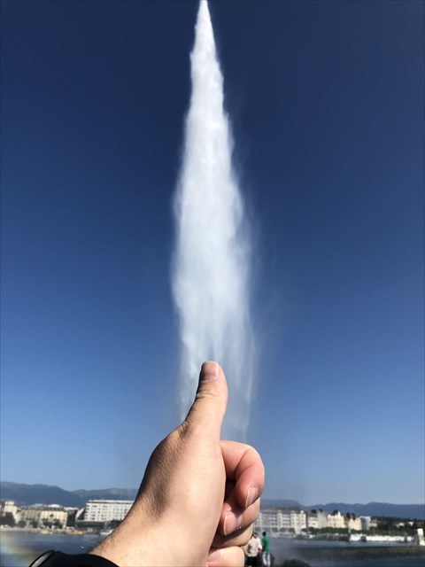 The Jet d'Eau is a large fountain in Geneva, Switzerland, and is one of the city's most famous landmarks, being featured on the city's official tourism web site and on the official logo for Geneva's hosting of the 2008 UEFA Championships. Situated at the point where Lake Geneva empties into the Rhône, it is visible throughout the city and from the air, even when flying over Geneva at an altitude of 10 kilometres. You can find all the necessary information regarding his story here.