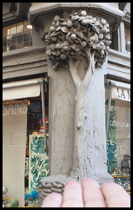 a sculpture supports its corner turret, representing a "tree of life" around which there were once the characters of Adam and Eve ; |